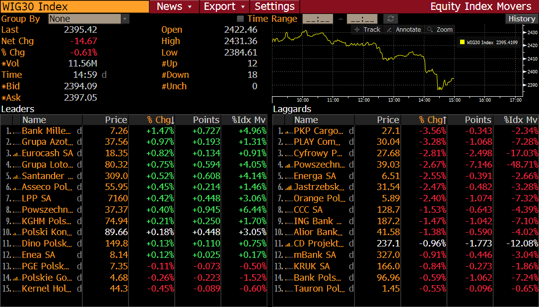 Sytuacja na spółkach z indeksu WIG30 Źródło: Bloomberg