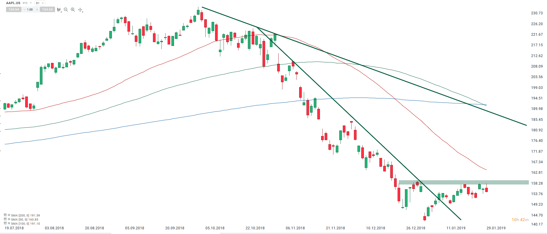 Trzecia największa pod względem kapitalizacji spółka na Wall Street opublikowała wczoraj po sesji swoje wyniki za ostatnie 3 miesiące. Były one w ujęciu przychodów zgodne z prognozami spółki, które zostały opublikowane wcześniej w tym miesiącu i wyniosły 84,3 miliardy dolarów. Całoroczny EPS wyniósł 4,18 dolara na akcję. Apple (AAPL.US) pomimo okresu świątecznego zanotował 15% spadek sprzedaży Iphone, a przychody w tej części wyniosły 52 miliardy dolarów. Na konferencji wynikowej, CEO Tim Cook powiedział, że skupia się na długoterminowej perspektywie i rozwoju, czego potwierdzeniem jest rekordowa ilość aktywnych urządzeń Apple na całym świecie, która na koniec grudnia osiągnęła 1,4 miliarda jednostek, a wzrost był odnotowany w każdym segmencie geograficznym. Spółka w handlu przedsesyjnym rośnie o ponad 5%.
