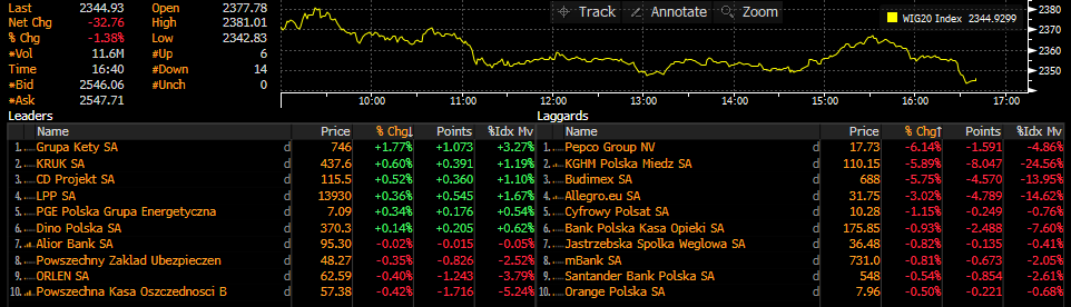 - WIG20 mocno traci, ze stratą takich spółek jak KGHM czy Pepco