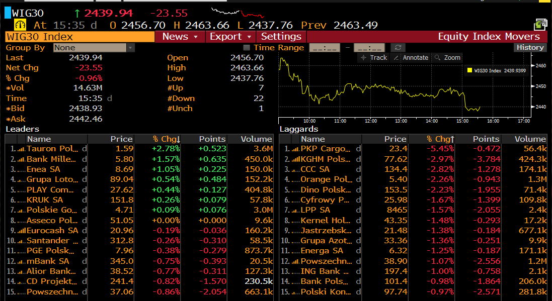 Spółki z indeksu WIG30. Źródło: Bloomberg
