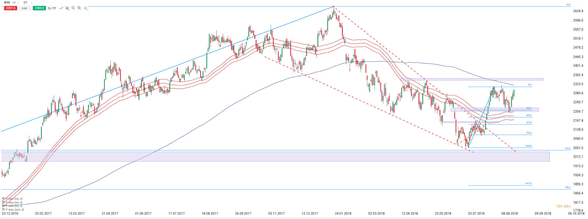 WIG20 (W20) powraca w kierunku szczytów z początku miesiąca