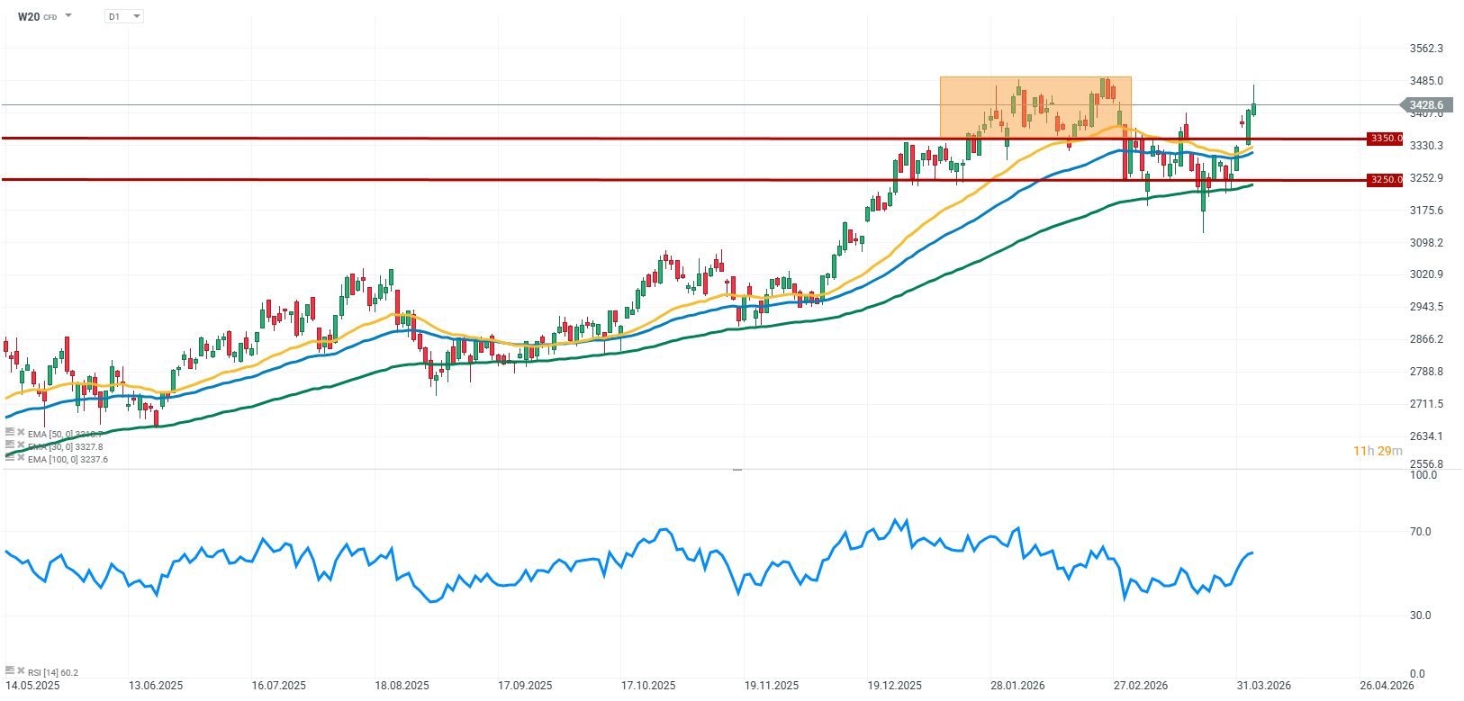 Obecne wzrosty można interpretować jako grę pod deeskalację. Rynek zdaje się dyskontować wariant, w którym dochodzi do odsunięcia w czasie potencjalnego konfliktu, czy to poprzez przedłużenie ultimatum, czy czasowe zawieszenie działań. W efekcie ryzyko eskalacji, choć obecne, nie jest jeszcze w pełni uwzględniane w wycenach.