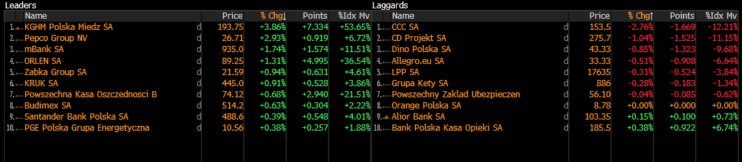 Spółki wchodzące w skład indeksu WIG20. Źródło: Bloomberg Finance L.P.