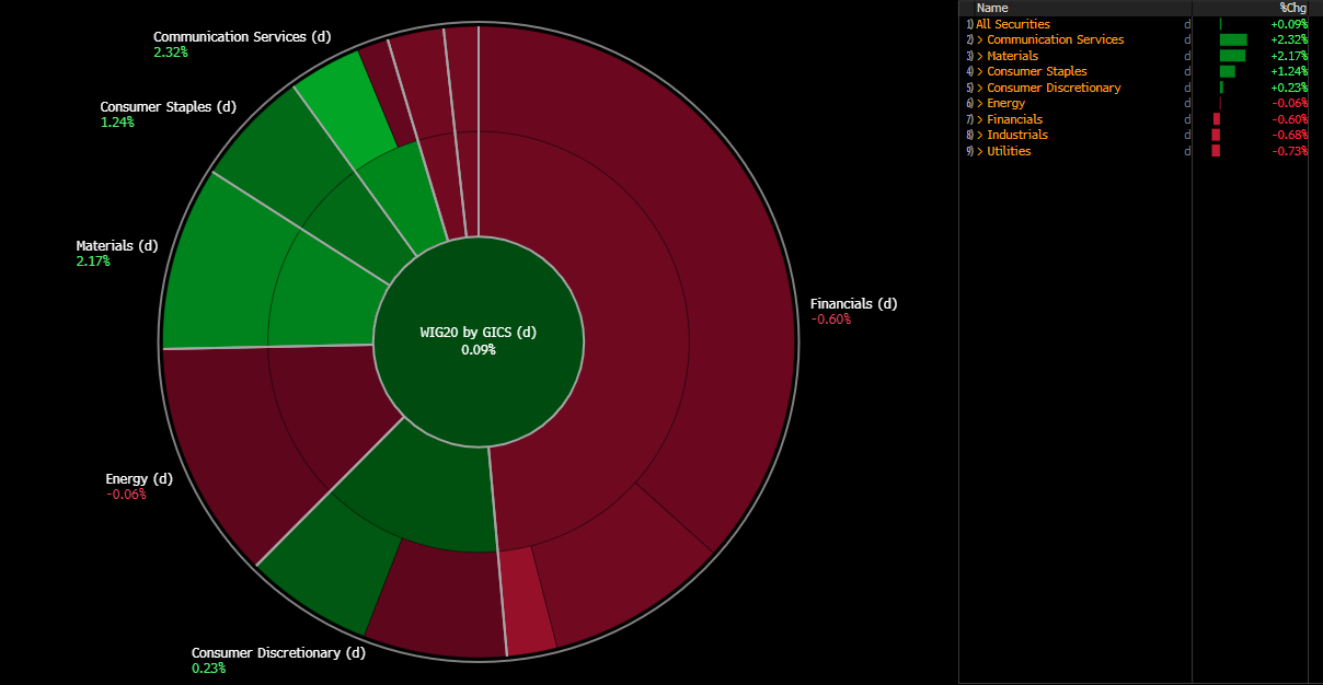 Wyniki sektorów wchodzących w skład indeksu WIG20. Źródło: Bloomberg Finance L.P.