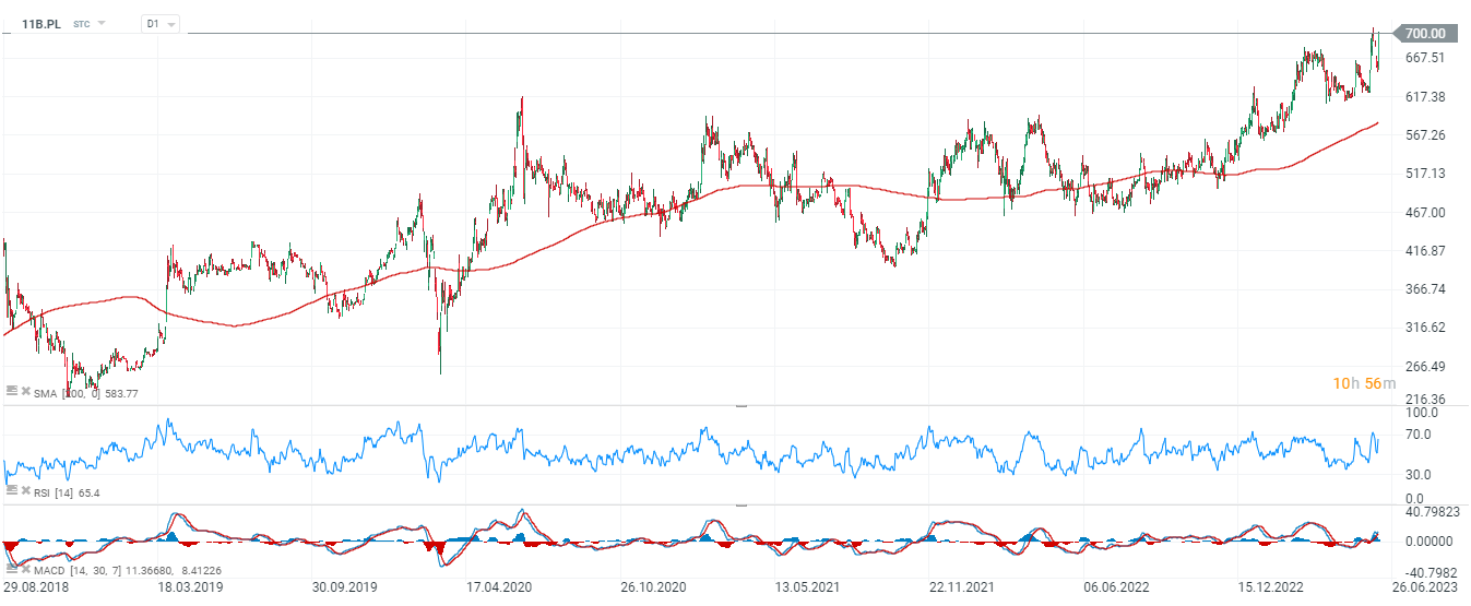 Akcje 11 bit Studios (11B.PL), interwał D1.