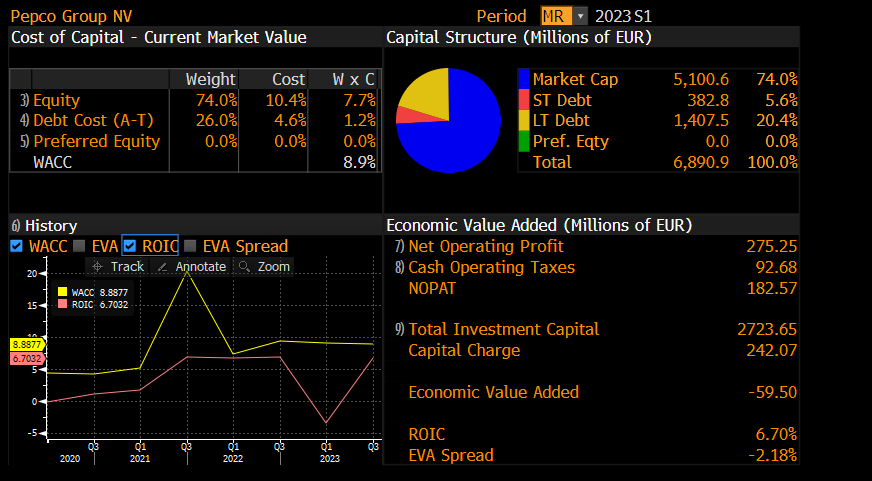 Akcje Pepco (PEP.PL) spadają od 10 sesji na relatywnie wysokim wolumenie co uzasadnia obawy wokół potencjalnej sprzedaży udziałów przez Steinhoff - obecnie upadający właściciel Pepco mógł zostać zmuszony do upłynnienia udziałów po rynkowych cenach by spłacić wierzycieli. Jednocześnie wycena biznesu Pepco w ciągu ostatnich tygodni stała się znacznie bardziej atrakcyjna ale wciąż wydaje się odległa od 'idealnej'. Ujemny EVA spread (Różnica między WACC - ważonymi kosztami inwestycji kapitałi a ROIC - zwrotem z zainwestowanego kapitału) jest ujemny co nie wydaje się w pełni uzasadniać wyceny C/Z na poziomie dwucyfrowym.