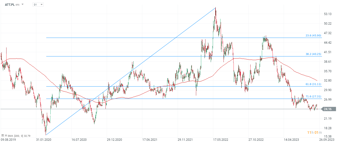 Wykres akcji Azoty (ATT.PL), interwał D1. Źródło: xStation5