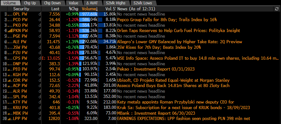 Główne wiadomości dot. spółek z WIG20. Źródło: Bloomberg