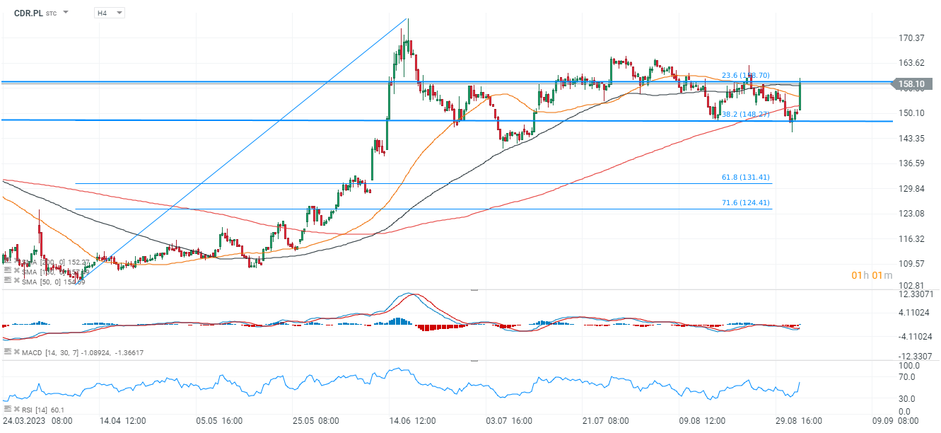 - CD Projekt (CDR.PL) notuje prawie 6% wzrosty, rekordowe wśród WIG20