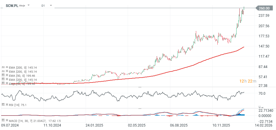 Działająca w branży systemów obserwacji kosmicznej i przemysłowej spółka Scanway (SCN.PL) w ubiegłym roku była najchętniej handlowaną spółką na rynku NewConnect, odpowiadając za ok. 14% wolumenu na NewConnect, co naturalnie pozycjonuje ją jako solidny walor, wchodzący do GPW. Brak nowej emisji akcji wobec wejścia na rynek głóny, związany jest z pozyskaniem w listopadzie 2025 roku długoterminowego inwestora, TFI PZU, który objął ponad 5% udziałów w firmie za kwotę łącznie 15,3 mln zł brutto. Przeniesienie notowań będzie miało charakter techniczny i ogranicza zakres wymaganej dokumentacji oraz jej weryfikacji. Aktualnie ,spółka „ostrożnie szacuje”, że debiut może nastąpić na przełomie pierwszego i drugiego kwartału 2026 roku. Kurs akcj spółki ma za sobą potężne wzrosty. Scanway specjalizuje się w zaawansowanych technologiach optycznych do obserwacji Ziemi z kosmosu i w systemach wizyjnych dla przemysłu. Projektuje i produkuje instrumenty optyczne (teleskopy) dla satelitów oraz systemy wizyjne oparte na AI (HyperEye) do kontroli jakości i detekcji defektów.