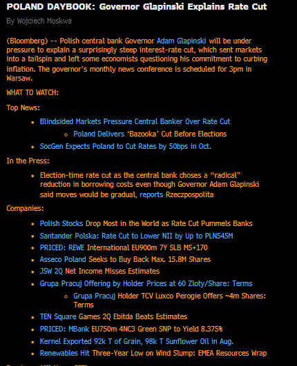 Główne wiadomości z rynku polskiego. Źródło: Bloomberg Financial LP