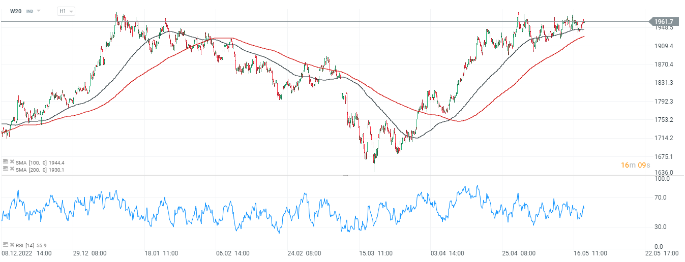 W20 zyskuje 0,7% i notowany jest w okolicach 1960 pkt
