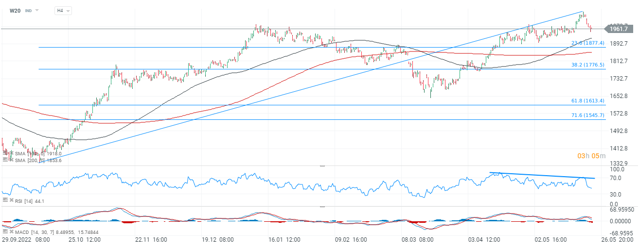 W20 notuje niewielką wyprzedaż i utrzymuje się powyżej 1960 pkt.