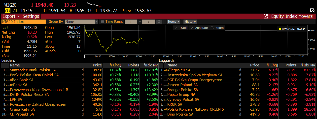 Główne informacje nt. spółek z polskiego parkietu. Źródło: Bloomberg