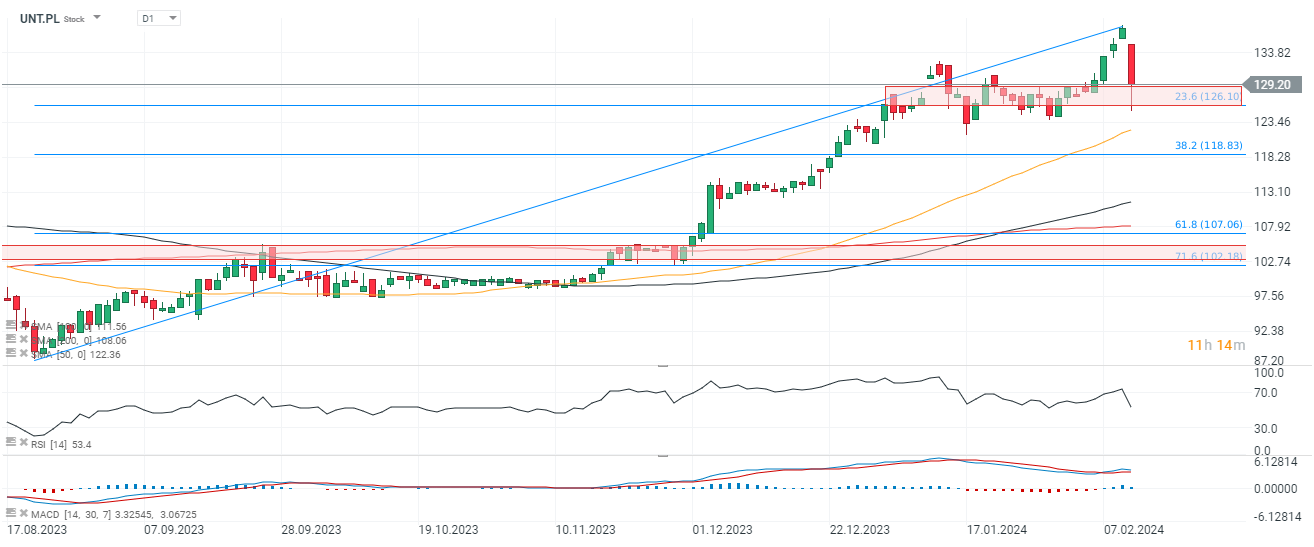 Unimot opublikował szacunki wyników finansowych. Po publikacji akcje grupy tracą prawie 5% i osuwają się z historycznych maksimów.