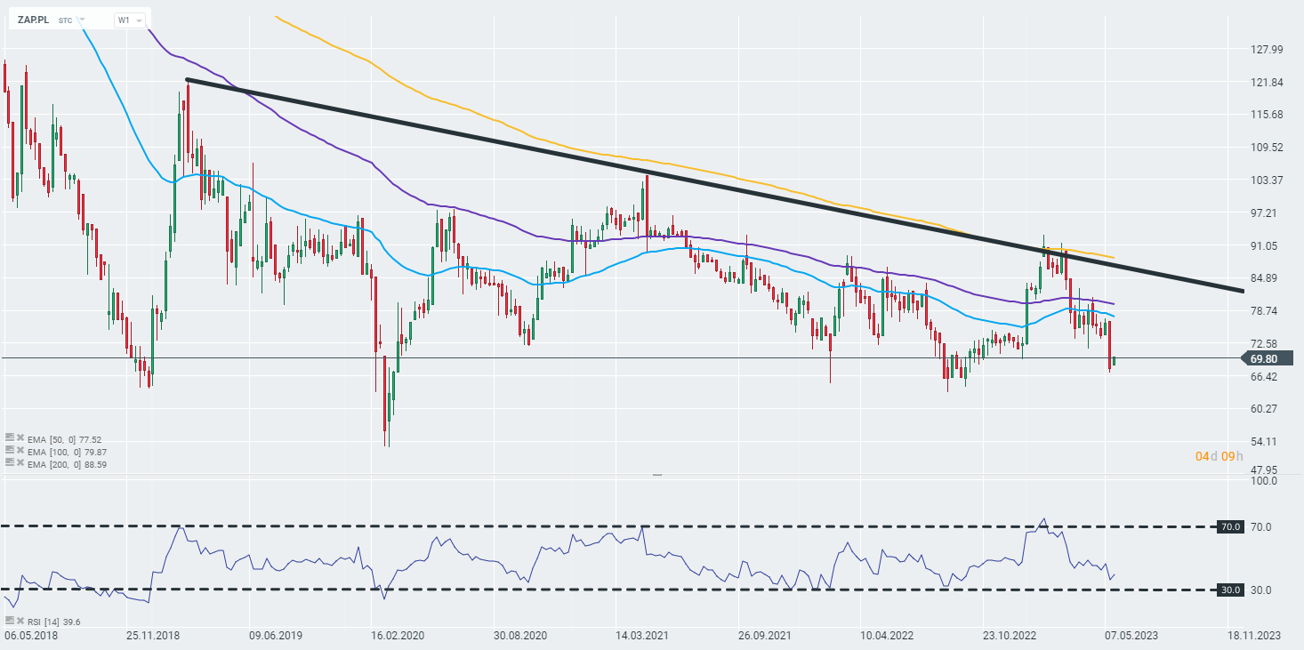 Z drugiej strony, cały konglomerat Grupy Azoty (ATT.PL) traci wobec publikacji słabych wyników kwartalnych. Grupa przede wszystkim ucierpiała z powodu wysokich cen gazu ziemnego oraz afery dotyczącej ukraińskiego zboża. W następstwie wskaźniki spółki znaczący się pogorszyły.