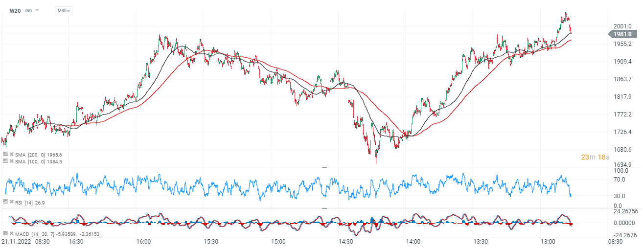 - W20 spada poniżej 2000 pkt i traci blisko 1,8%