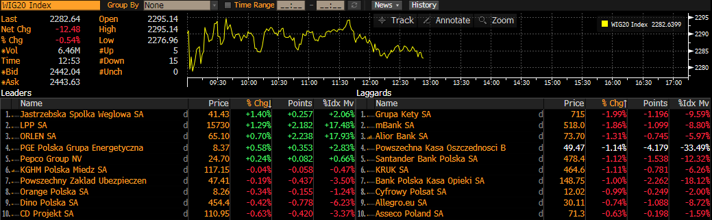 - Słabsze nastroje na rynkach ciążą rynkowi akcji nad Wisłą