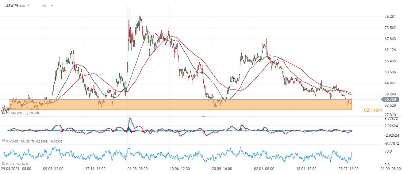 Akcje JSW (JSW.PL), interwał H4. Źródło: xStation5