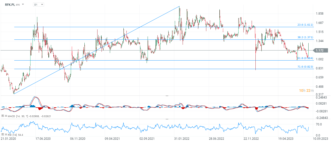 Akcje Rafako (RFK.PL), interwał D1. Źródło: xStation5