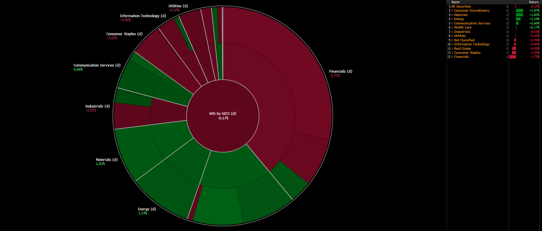 Rozkład sektorów w indeksie WIG. Źródło: Bloomberg Finance L.P.