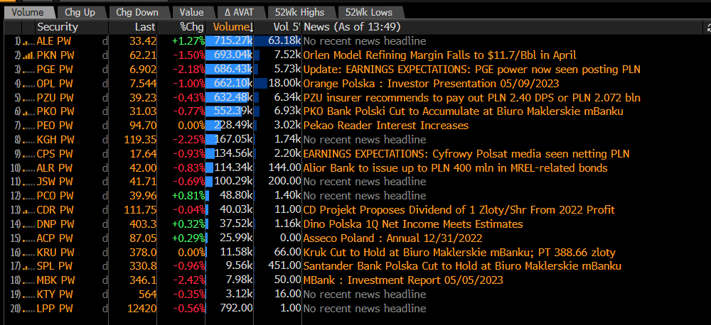 Główne wiadomości z polskiego parkietu. Źródło: Bloomberg