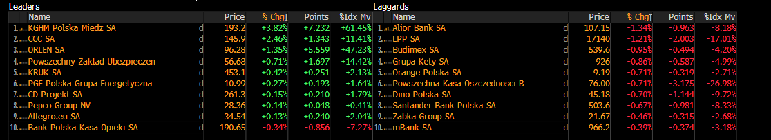 Spółki wchodzące w skład indeksu WIG20. Źródło: Bloomberg Finance L.P.