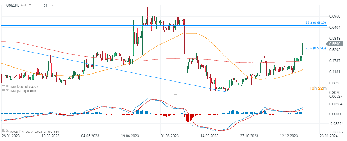 Akcje Grupy Modne Zakupy (GMZ.PL) zyskują ponad 14%, ponieważ firma otrzymała zastrzyk zewnętrznego finansowania, w wysokości 20 mln PLN. Udostępniły je spółki Global Tech Opportunities 4 oraz ABO Securities. W zamian za wypłacone na rzecz grupy transze środków pieniężnych (łącznie do 20 mln zł), zaoferowane zostaną obligacje zamienne.