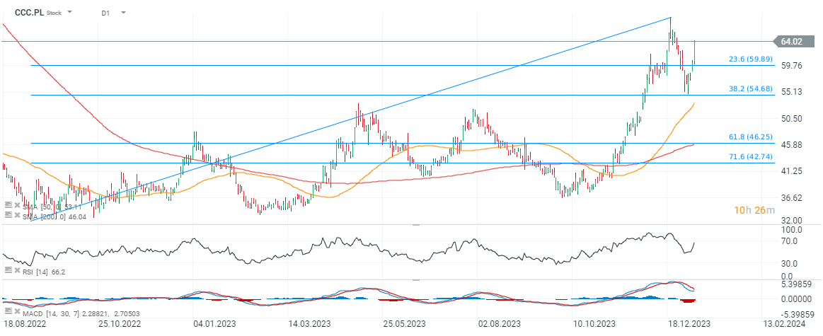 - CCC (CCC.PL) przewodzi wzrostom i notuje niemal 5% rajd