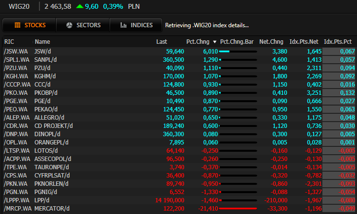 Spółki z indeksu WIG20. Źródło: Refinitiv Eikon
