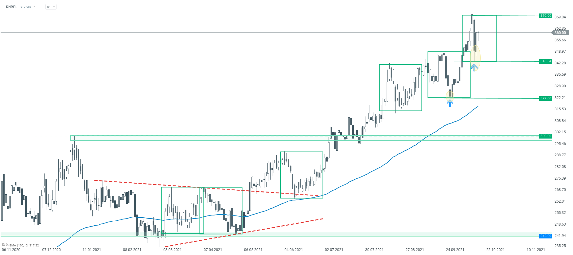 Dino Polska (DNP.PL), interwał D1. Źródło: xStation5