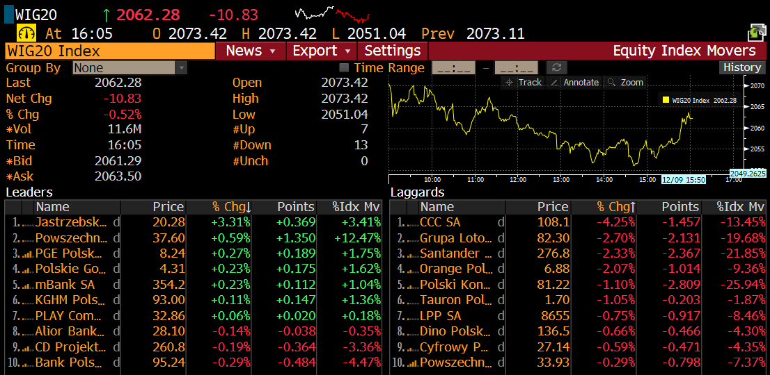 Spółki z WIG20. Źródło: Bloomberg