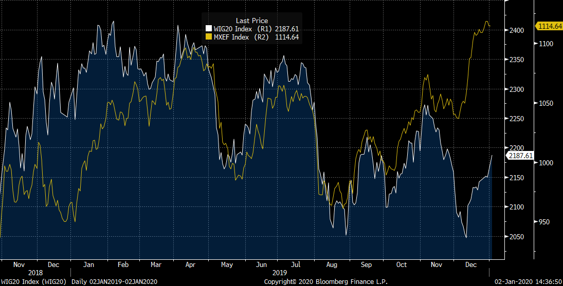 Wciąż spora dywergencja WIG20 z światowym benchmarkiem dla rynków EM