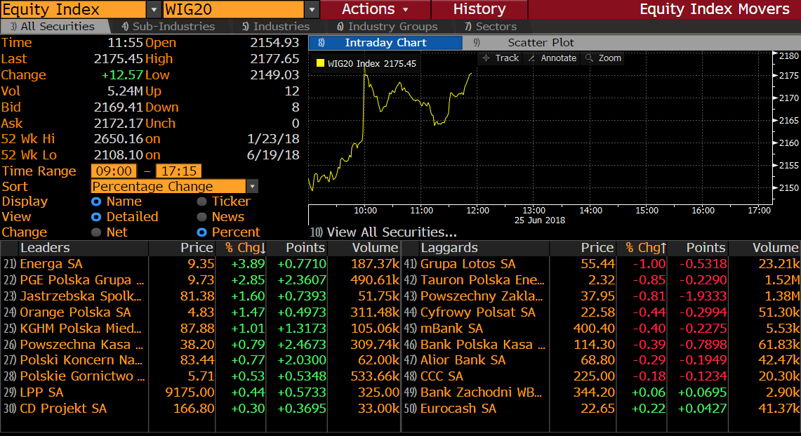 Zestawienie komponentów indeksu WIG20 (W20). Źródło: Bloomberg
