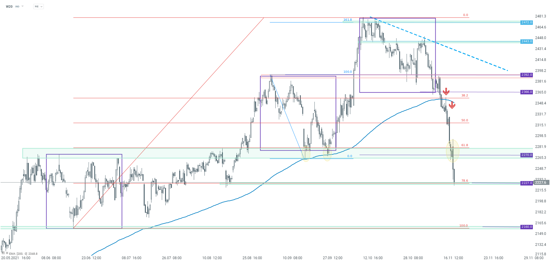 WIG20 (W20) kontynuuje spadki, interwał H4. Źródło: xStation 5