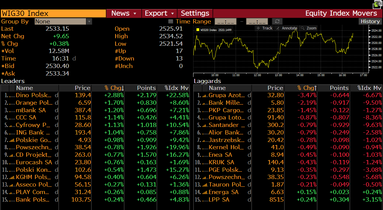 Spółki z WIG30. Źródło: Bloomberg
