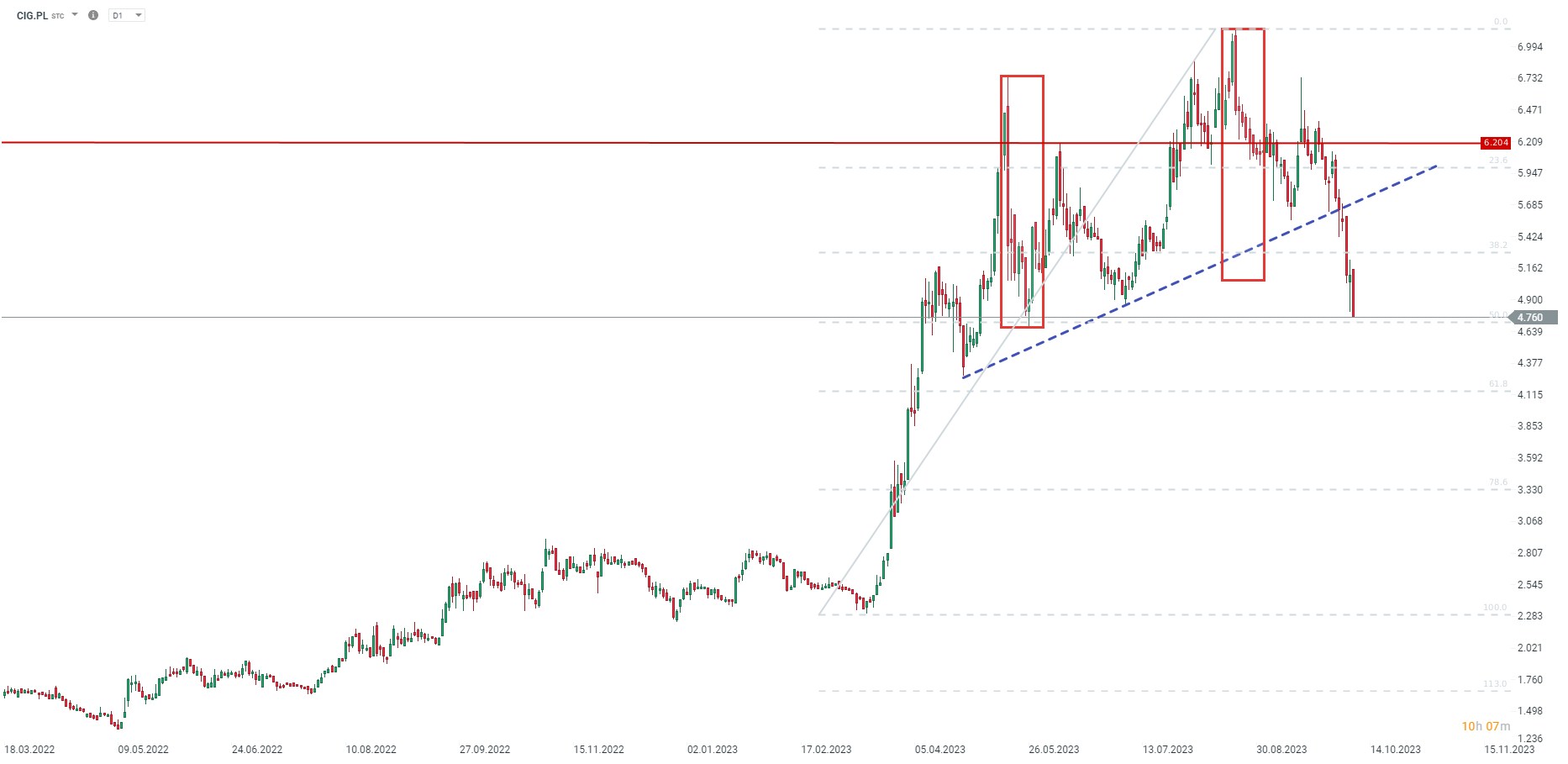 Wyprzedaż CI Games (CIG.PL) wzmaga się i obecnie testowane jest zniesienie 50.0 rajdu od lutego do sierpnia. Źródło: xStation5