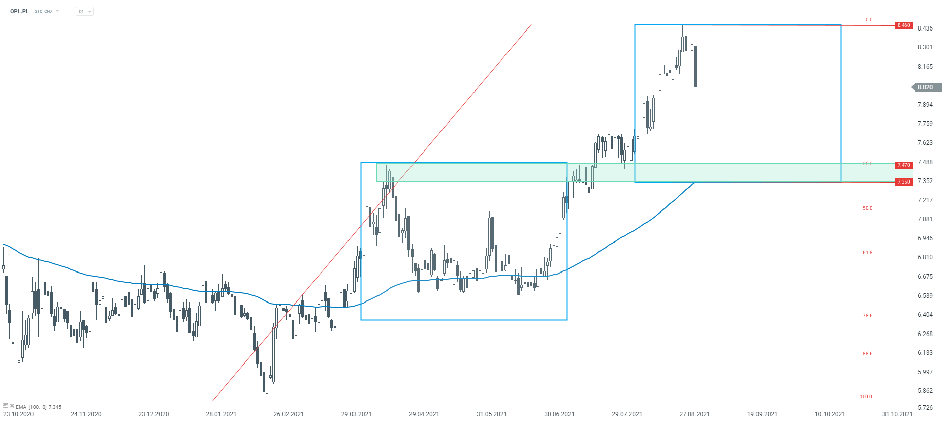 Orange Polska (OPL.PL) interwał D1. Źródło: xStation5