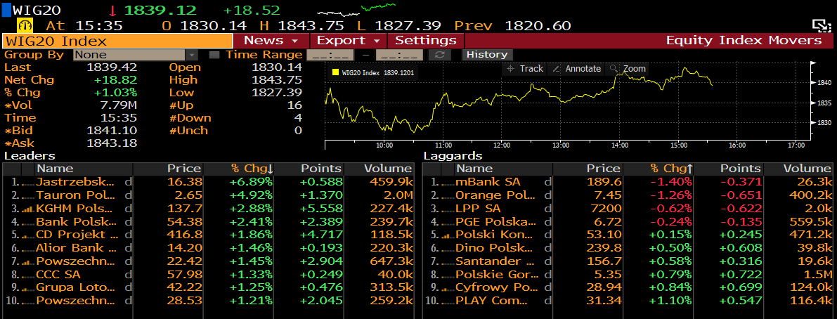 Spółki z indeksu WIG20. Źródło: Bloomberg