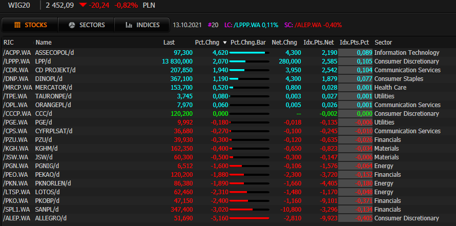 Spółki z indeksu WIG20. Źródło: Refinitiv Eikon