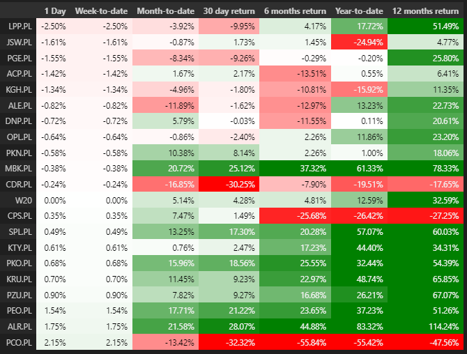 Zmiany na WIG20: