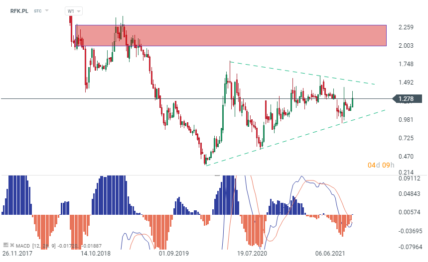 Spółka Rafako (RFK.PL), interwał W1. Źródło: xStation 5