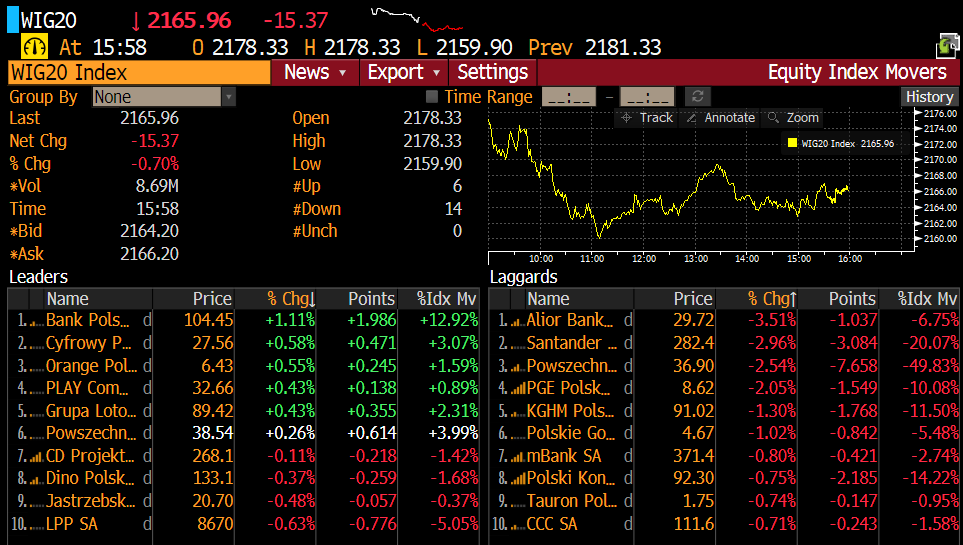 Spółki z indeksu WIG20. Źródło: Bloomberg