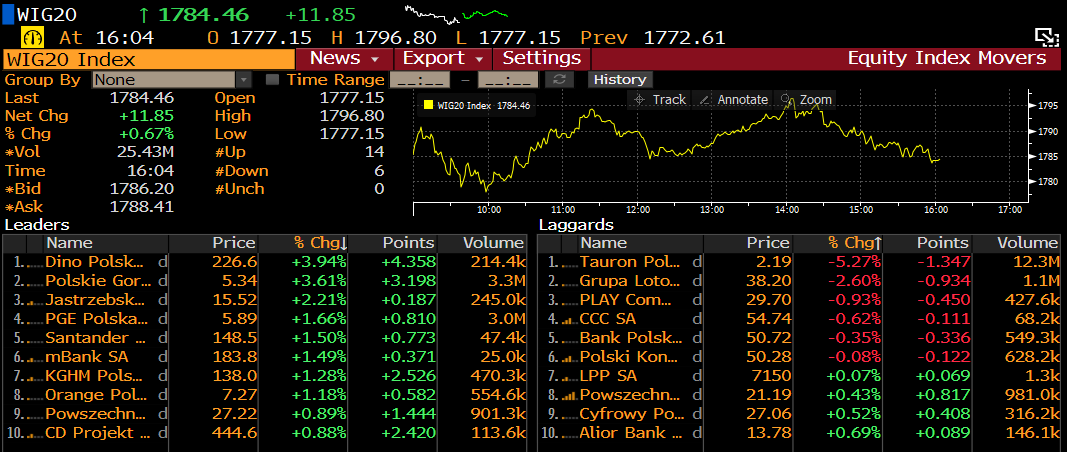 Spółki z indeksu WIG20. Źródło: Bloomberg