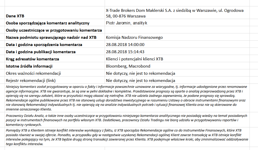 Ta publikacja handlowa jest informacyjna i edukacyjna. Nie jest rekomendacją inwestycyjną ani informacją rekomendującą lub sugerującą strategię inwestycyjną. W materiale nie sugerujemy żadnej strategii inwestycyjnej ani nie świadczymy usługi doradztwa inwestycyjnego. Materiał nie uwzględnia indywidualnej sytuacji finansowej, potrzeb i celów inwestycyjnych klienta. Nie jest też ofertą sprzedaży ani subskrypcji. Nie jest zaproszeniem do nabycia, reklamą ani promocją jakichkolwiek instrumentów finansowych. Publikację handlową przygotowaliśmy starannie i obiektywnie. Przedstawiamy stan faktyczny znany autorom w chwili tworzenia dokumentu. Nie umieszczamy w nim żadnych elementów oceniających. Informacje i badania oparte na historycznych danych lub wynikach oraz prognozy nie stanowią pewnego wskaźnika na przyszłość. Nie odpowiadamy za Twoje działania lub zaniechania, zwłaszcza za to, że zdecydujesz się nabyć lub zbyć instrumenty finansowe na podstawie informacji z tej publikacji handlowej. Nie odpowiadamy też za szkody, które mogą wynikać z bezpośredniego czy też pośredniego wykorzystania tych informacji. Inwestowanie jest ryzykowne. Inwestuj odpowiedzialnie.