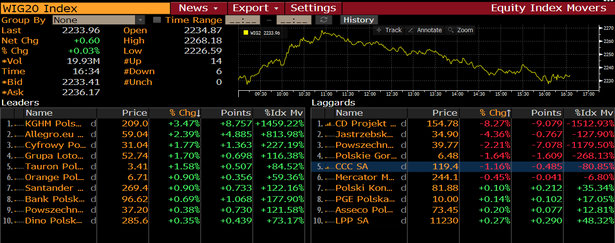 Spółki z WIG20. Źródło: Bloomberg