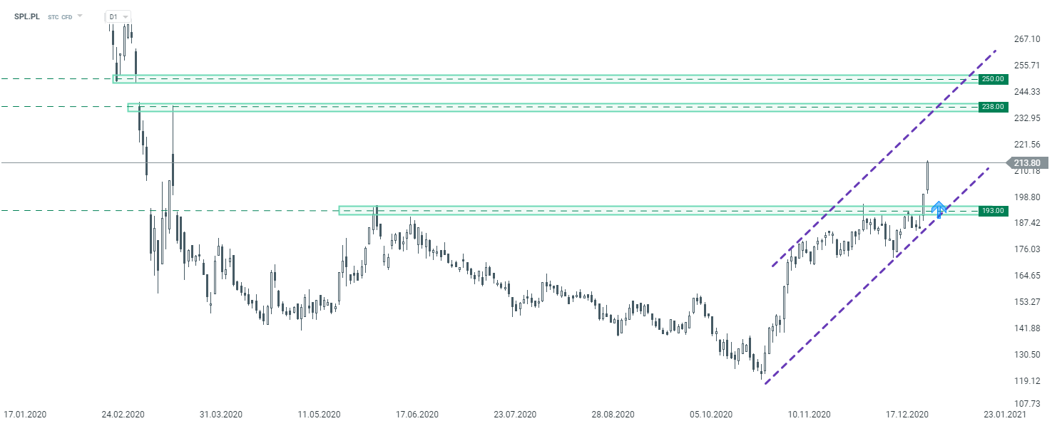 Santander Bank Polska (SPL.PL) interwał D1. Źródło: xStation5