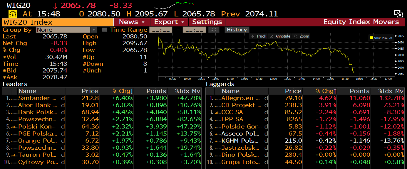 Spółki z indeksu WIG20. Źródło: Bloomberg