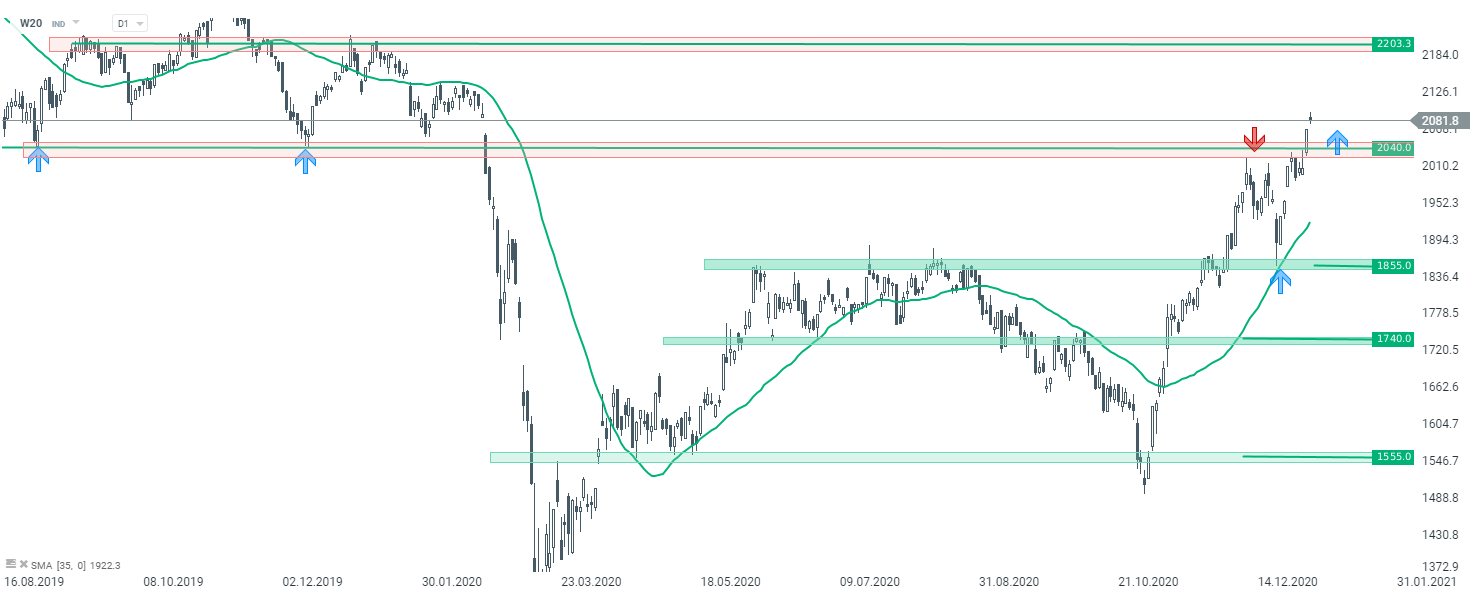 WIG20 (W20) interwał D1. Źródło: xStation5