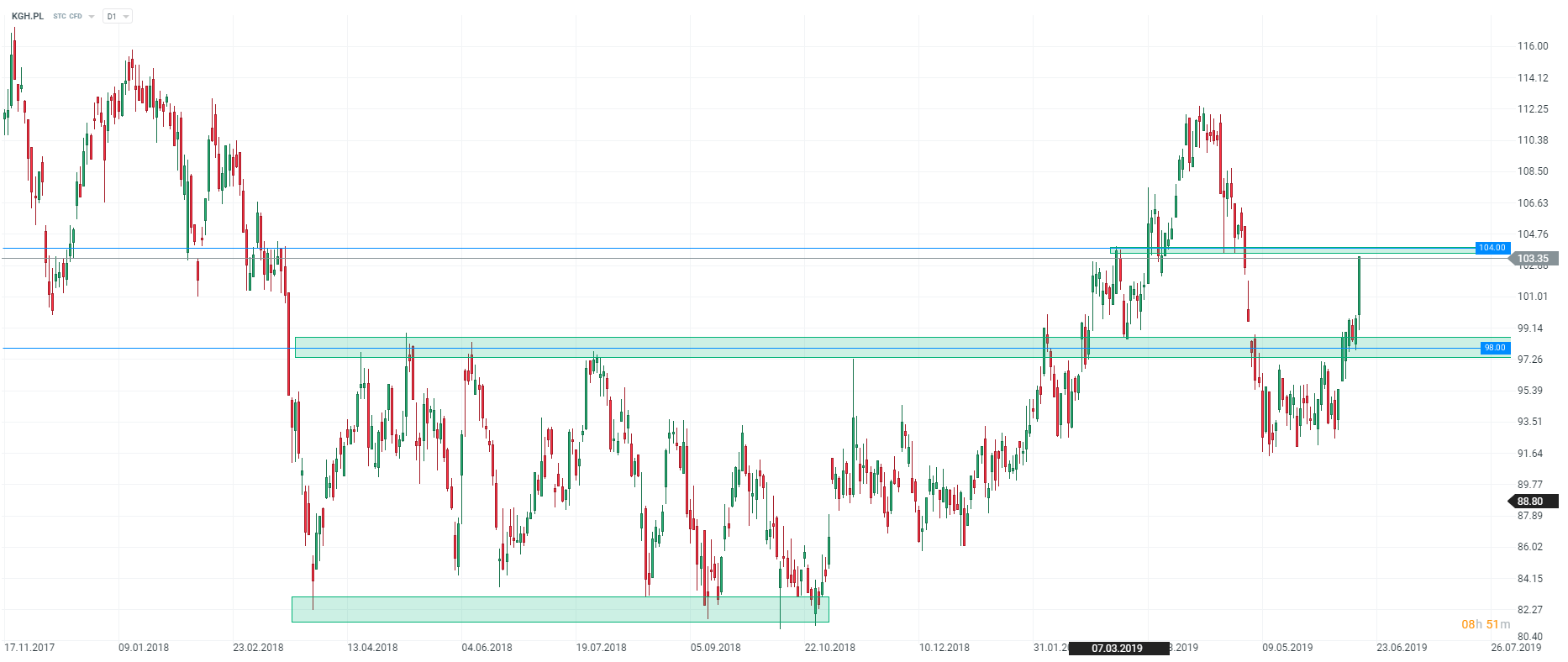 Źródło: xStation5Kurs akcji KGHM mocno w górę
